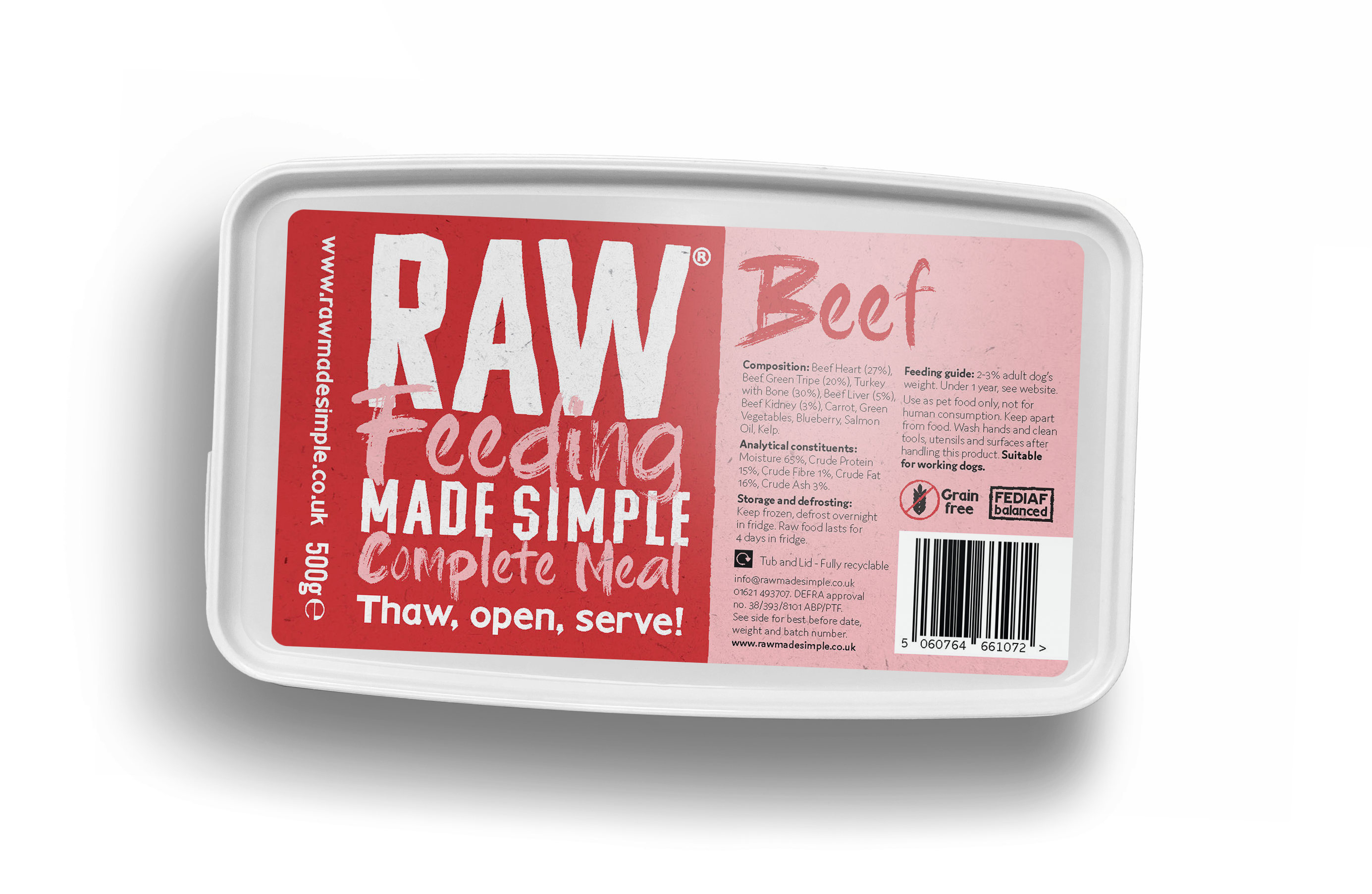 Just thaw, open, serve. Fuss-free tubs make raw feeding clean, convenient and simple – happy dogs and happy owners.